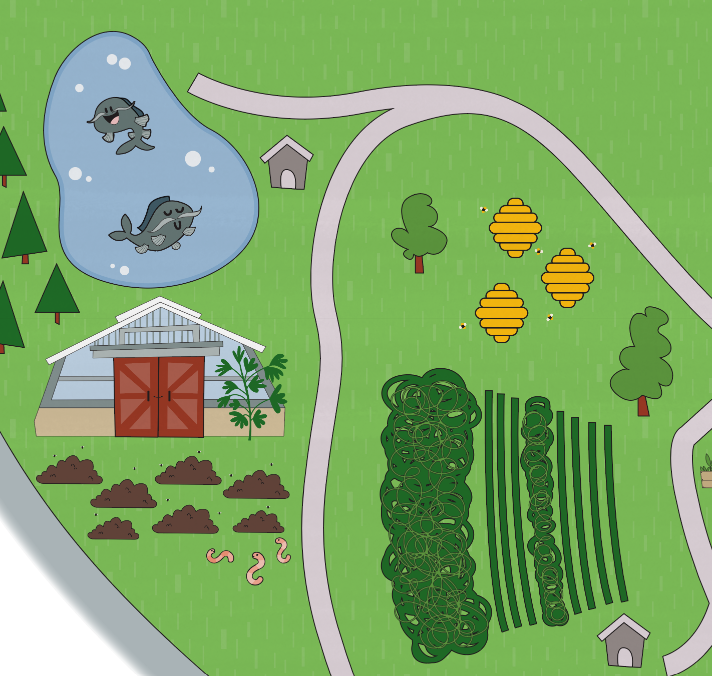 Illustrated map of Piney Woods Farm in LaGrange, GA. This map was created in Ai for Atomic Brand Energy.